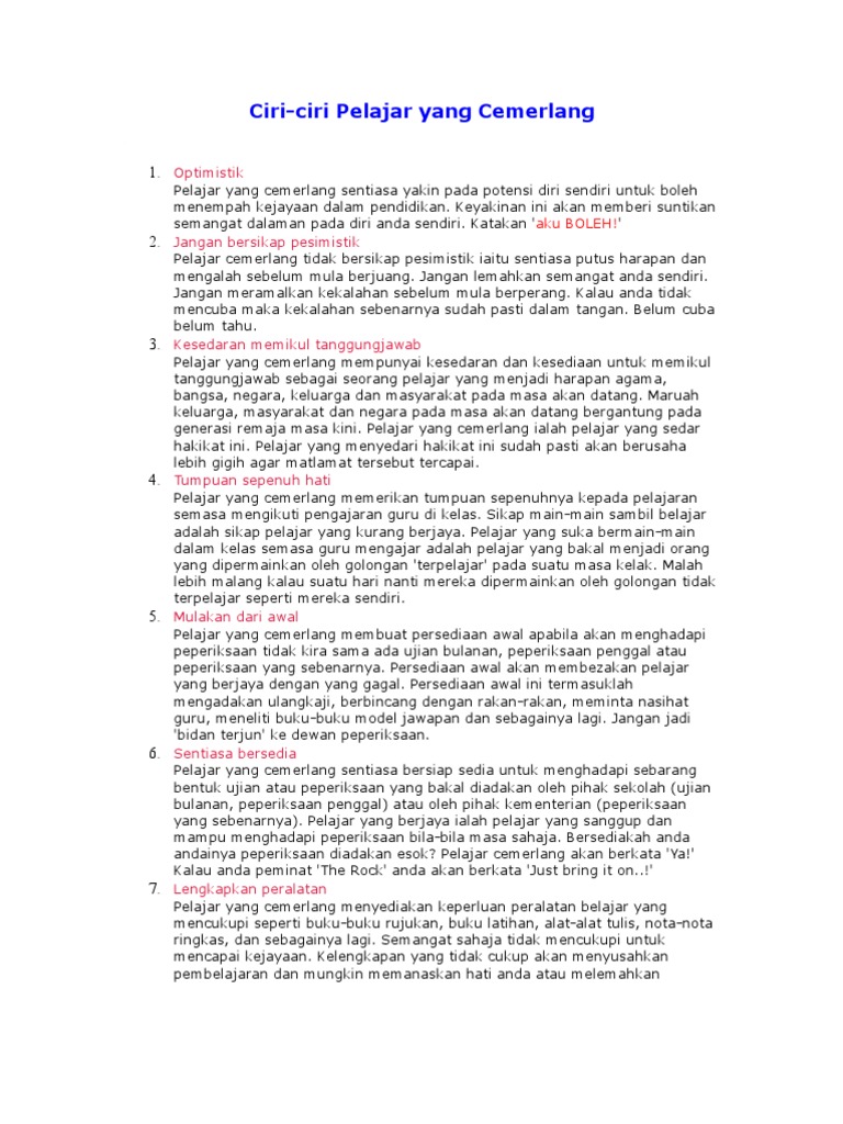 Doc Karangan Bahasa Melayu Pmr Ciri Ciri Murid Cemerlang Ciri Ciri Murid Cemerlang Lai Heng Academia Edu